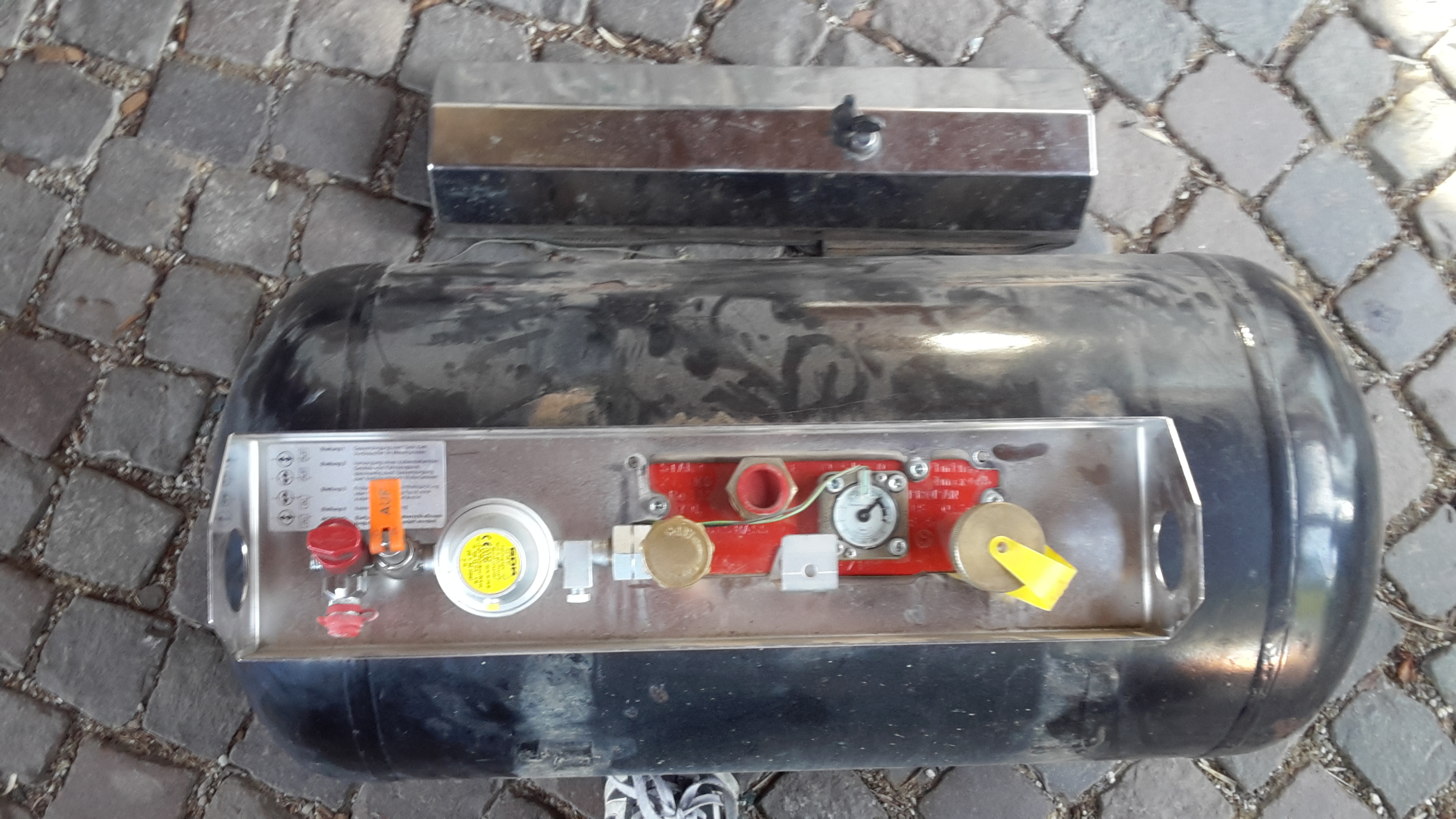 Der Tank kostet neu rund 200,- €, plus etwa 100,- für Entnahme- und Befüllarmatur (je nachdem welches Anschlussgewinde man möchte).