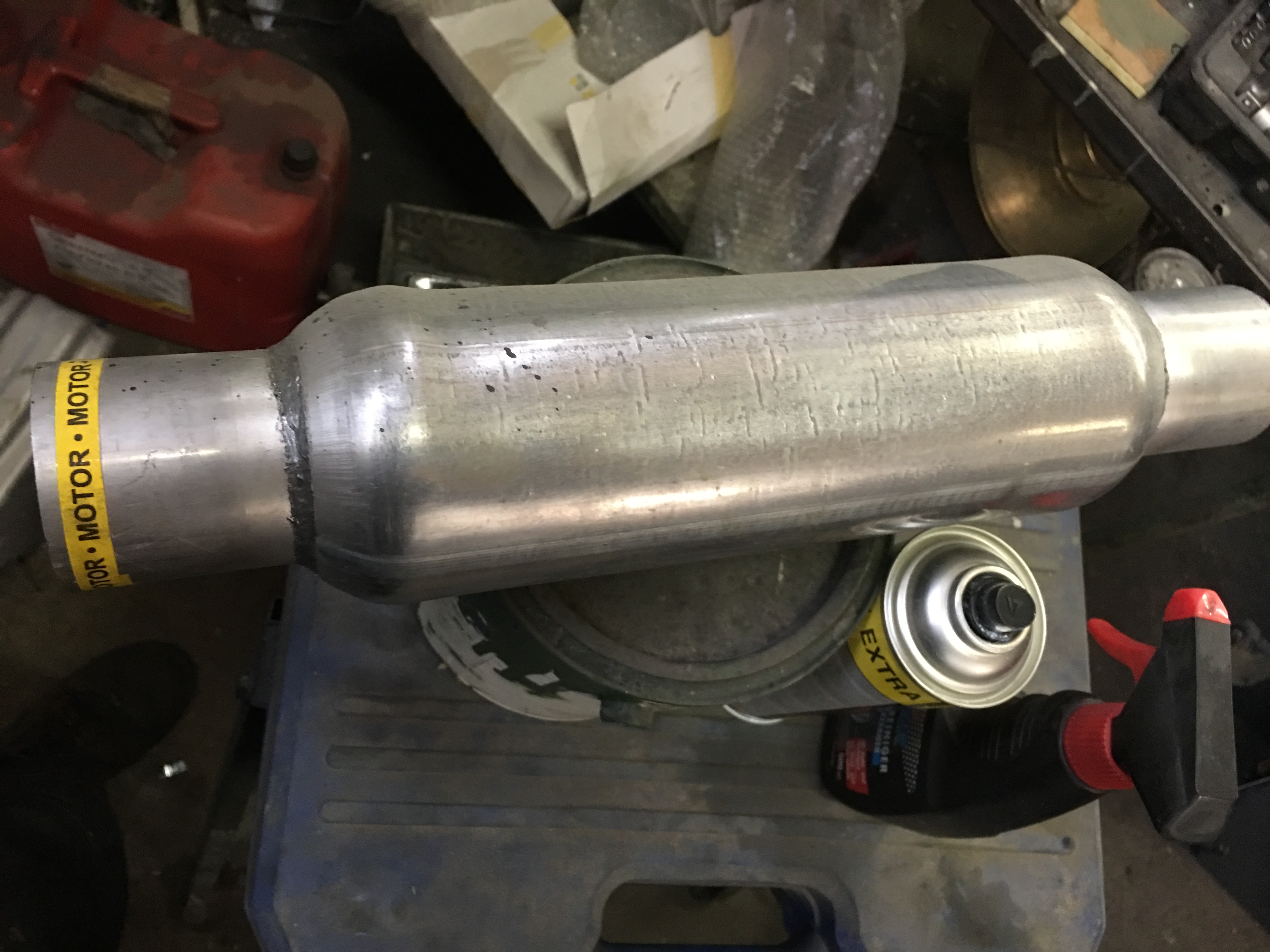 allerdings richtig begeistert war ich von dieser komischen Tüte die in den offenen Auspuff geschweißt wird