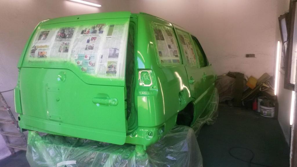 Felgen, Front- und Heckstoßstange, Dachträger sowie die Schweller sollen dann Schwarz werden, damit es noch einen Kontrast gibt und nicht alles nur Grün ist :-D