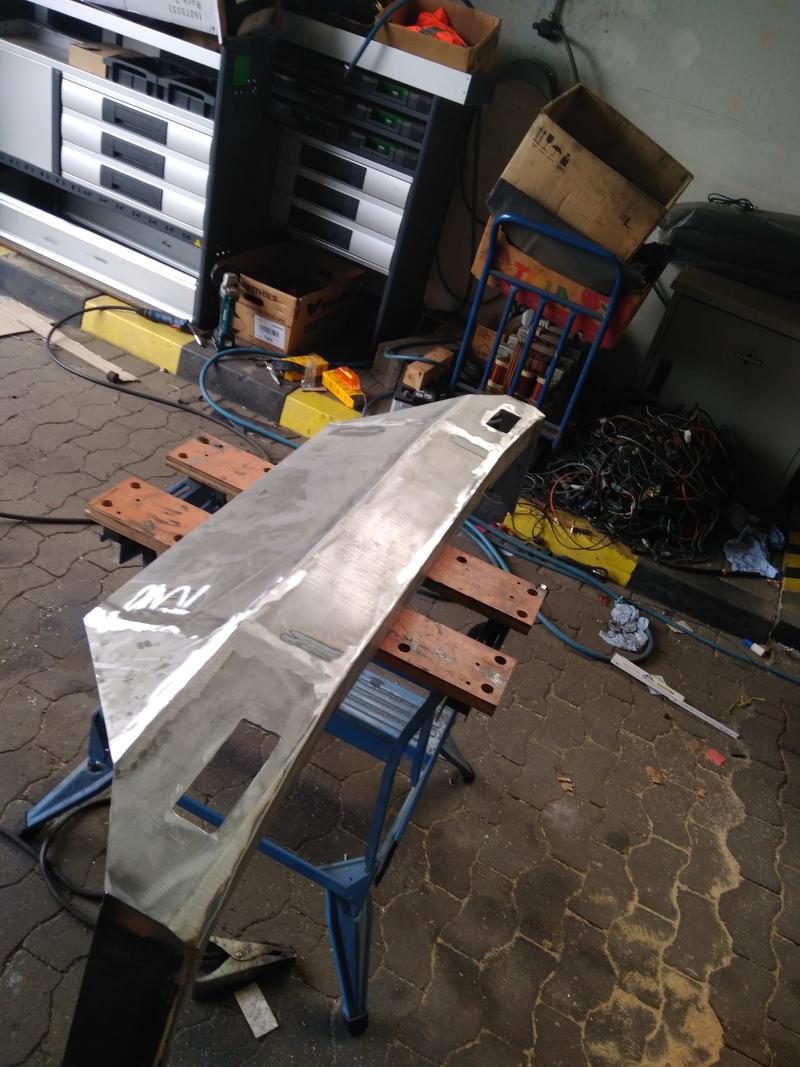 Ich habe vergessen noch ein paar Bilder vom Bau der Heckstoßstange zu machen, aber im Grunde ist das Vorgehen das Gleiche wie bei der Front, Stück für Stück zusammengepunktet und dann halt durchgeschweißt :-)