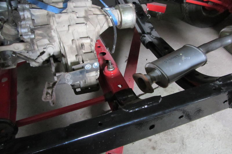 Im Bild unten zwischen Verteilergetriebe und Auspuffflansch ist die (linke) Einstellschraube für die Vorspannung zu sehen. Auf er anderen Seite gibt es natürlich auch noch eine.