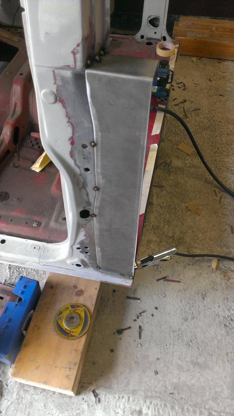 Der Übergang im Fensterbereich wird noch trickie...denn was da so schön gerade ausschaut, ist leicht gewölbt. Und unter der Regenrinne schweißt es sich nur sehr schlecht.
