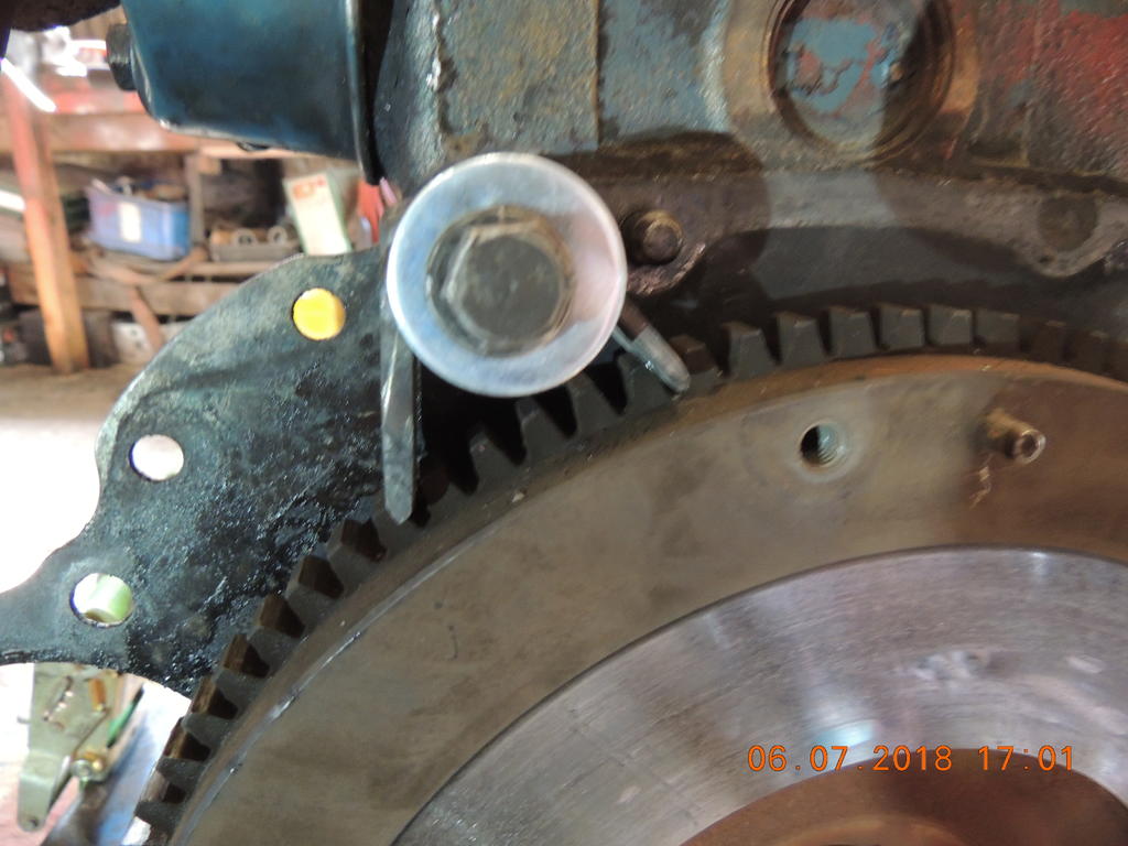 (Im WHB wird aber entweder der Zahnkranz von der Schwungscheibe, oder bei geöffnetem Motor die Kurbelwelle mit einem Holzklotz blockiert.)