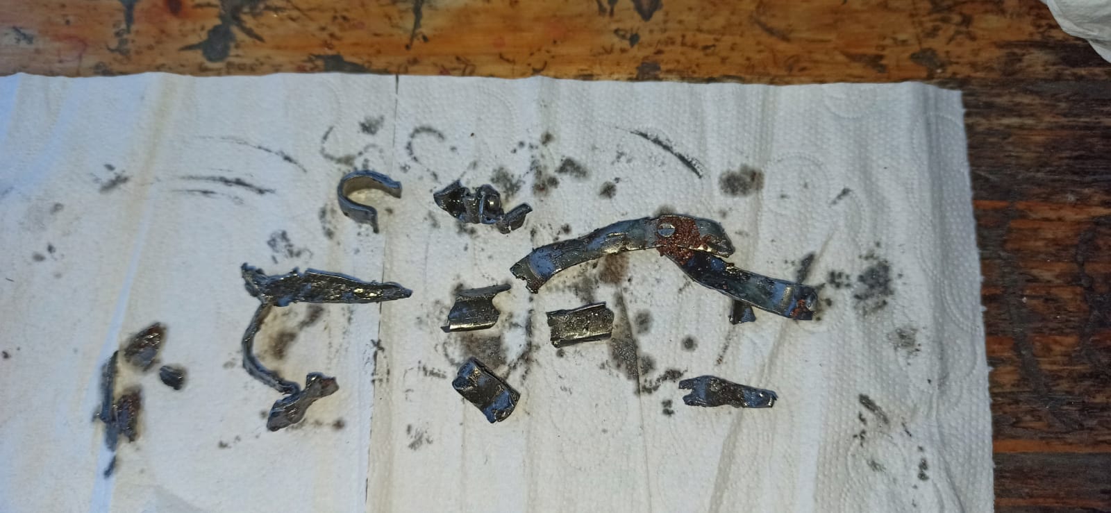 Getriebeöl angelassen und Deckel unten aufgemacht um reinzugucken, dabei kamen mehrere Teile zum Vorschein, die so in der Form wohl mal anders ausgesehen haben und sich vom Originalort wegbewegt haben, siehe Fotos.