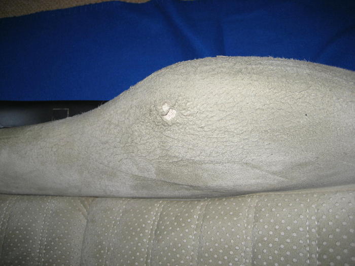des loch is bei fahrersitz- flicken sollte kein problem sein- da der sitzbezug aus mehreren teilen besteht..!