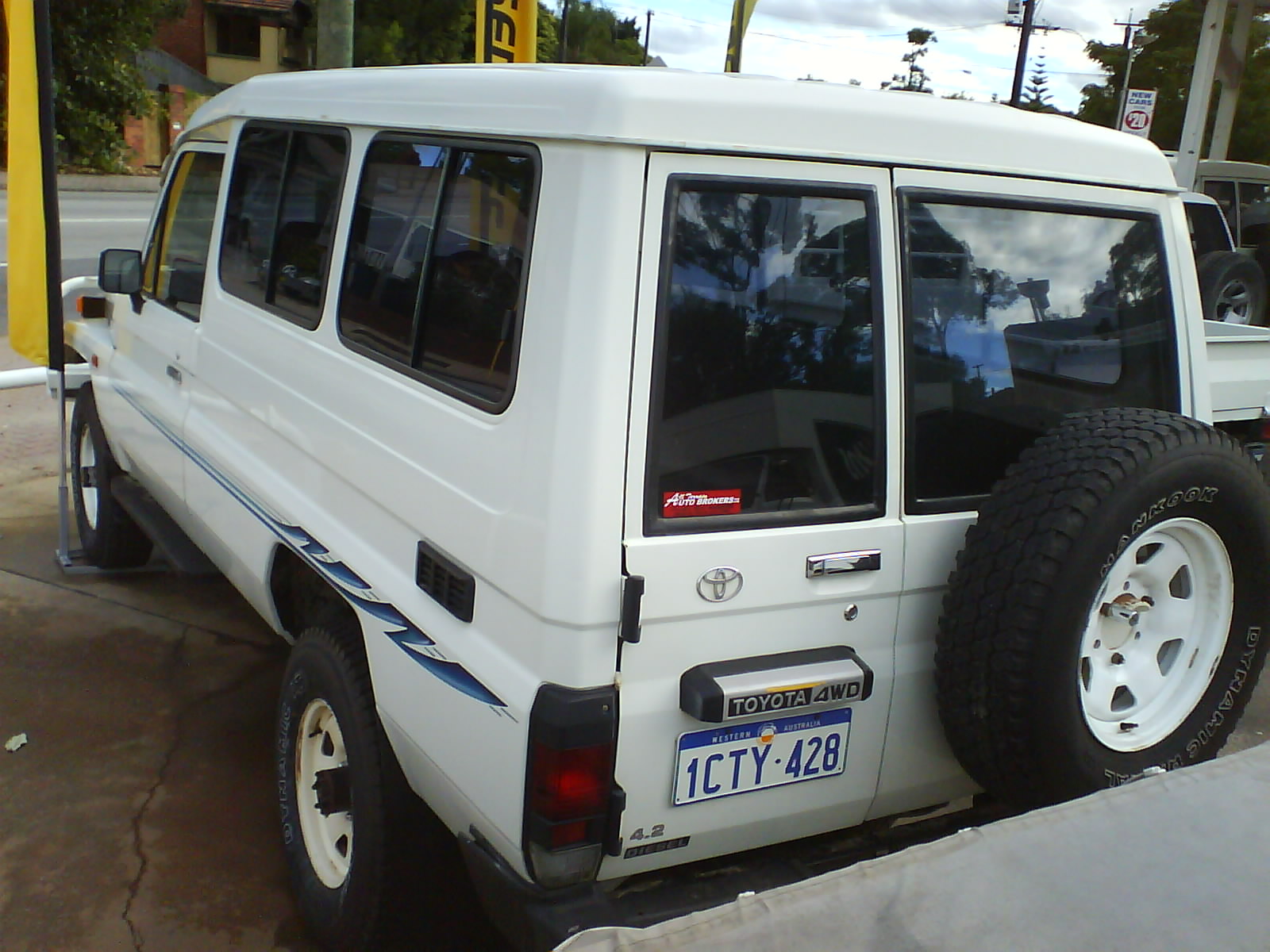 Wir sind nun ja schon in Perth angekommen und nach 14h Jetlag ausschlafen haben wir gleich den ersten Troopie besichtigt, leider war der Besitzer nicht da, darum nur ein paar Pics im Attachment. Ist laut der Anzeige ein 96er, hat Blattfedern vorne, ist wohl ein HZJ75.