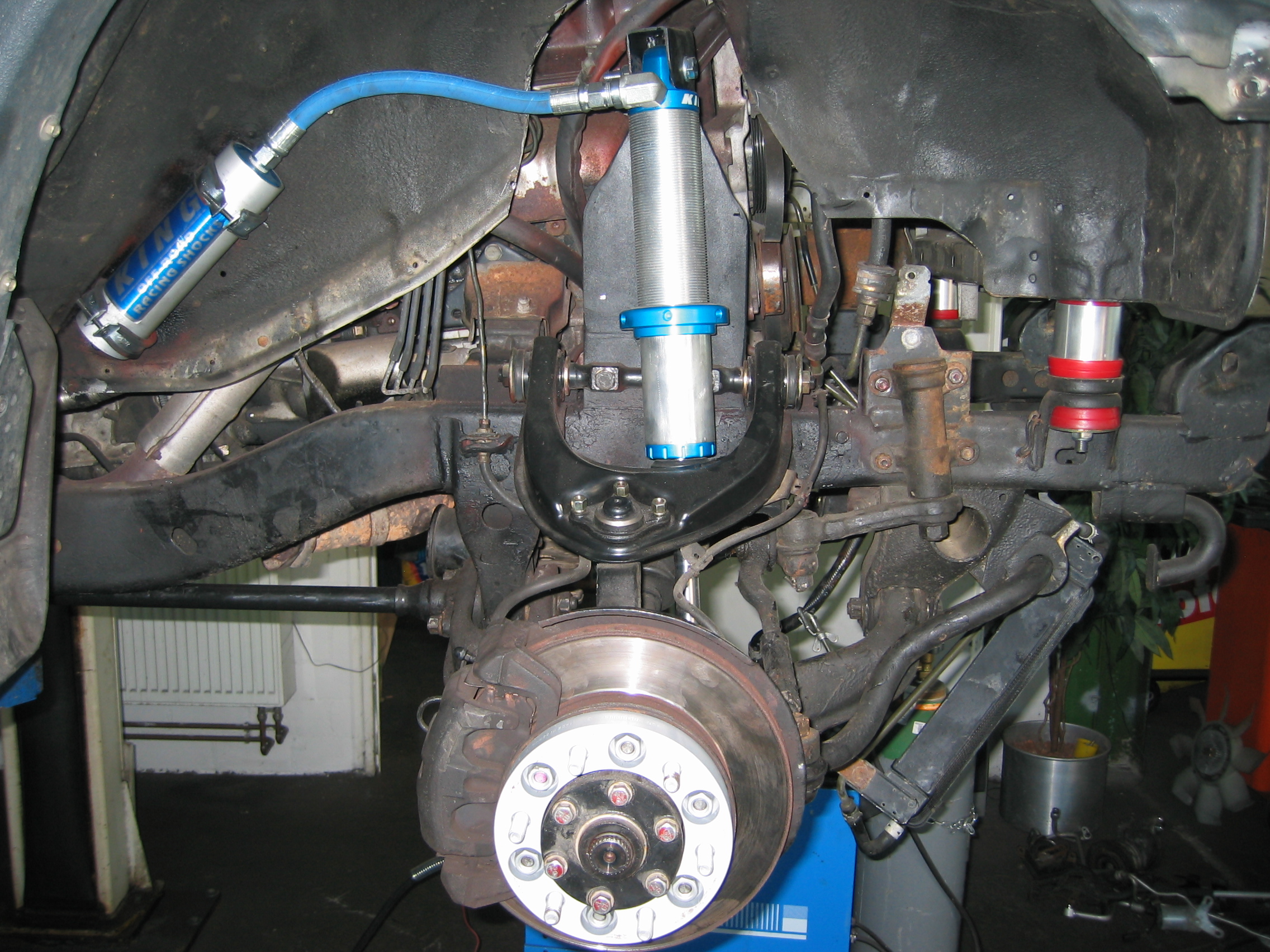 Werde die Achsschenkel nach unten versetze und die Drehstäbe raus schmeissen und eine Dämpferfederkombination aus den USA einbauen. Hatte auch schon an die Lenker vom Mercedes ML gedacht