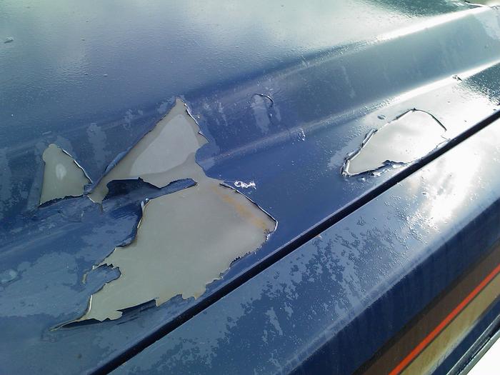 Hier sieht man schon den Lackschaden auf der Haube