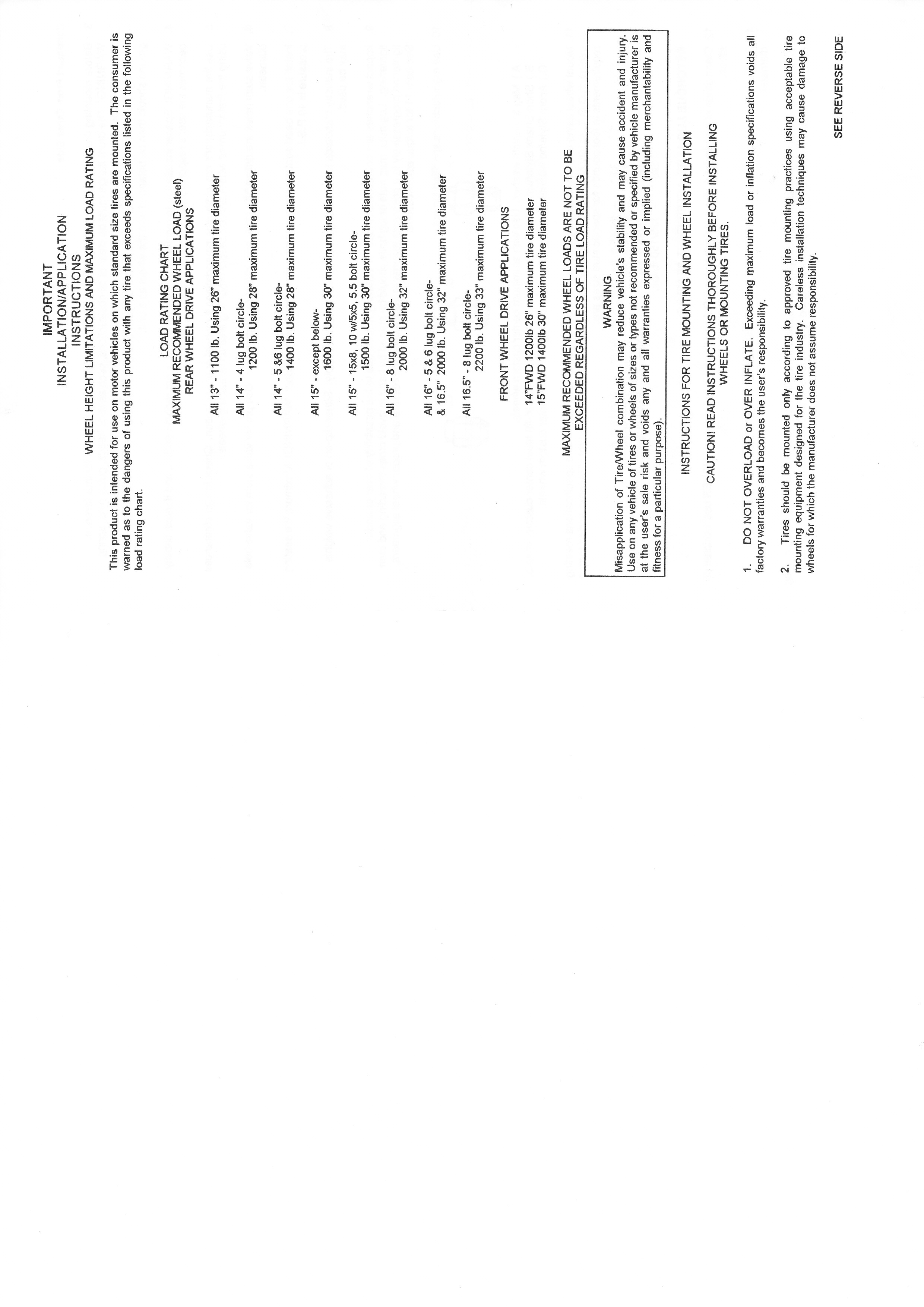 Bei den Cragar Felgen kommt es auf die Grösse an, bei meinen war im Karton ein kleiner Zettel mit Lastangaben.