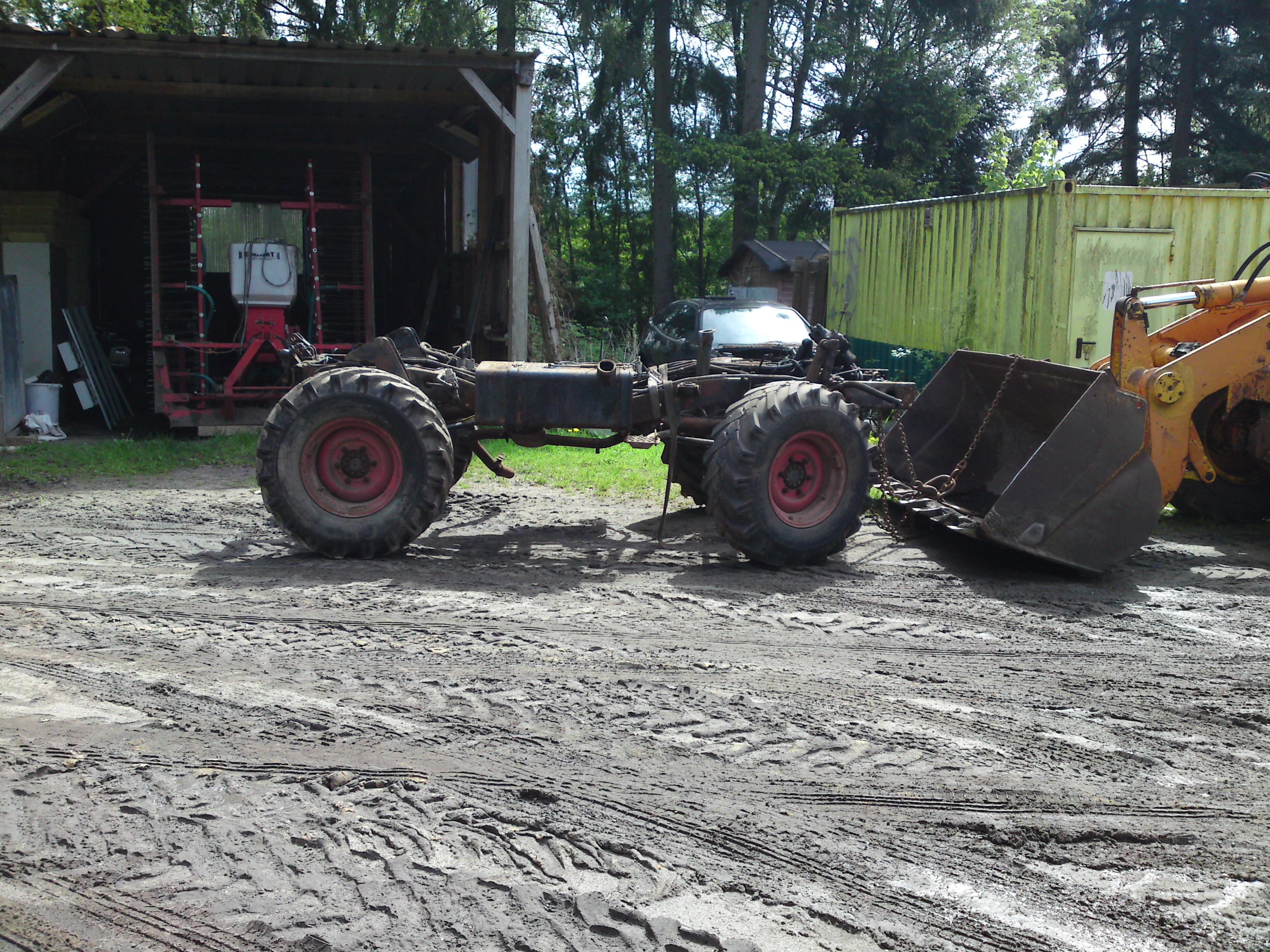 Der Mog wurde nach einem Motorschaden unter ein Dachgestellt und mit der zeit zerlegt und in Teilen verkauft und nun sind noch Achsen und Fahrgestell da, sollen kein vermögen bringen sondern nur weg und wenn sie einer brauchen kann, kann er sie für kleines Geld
