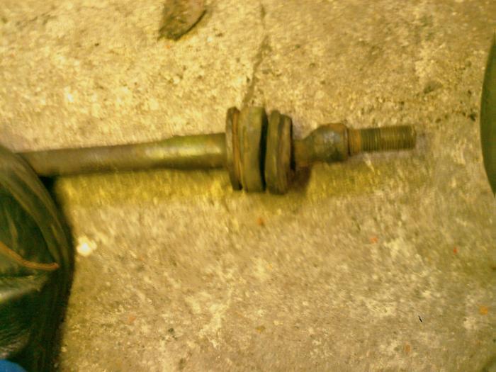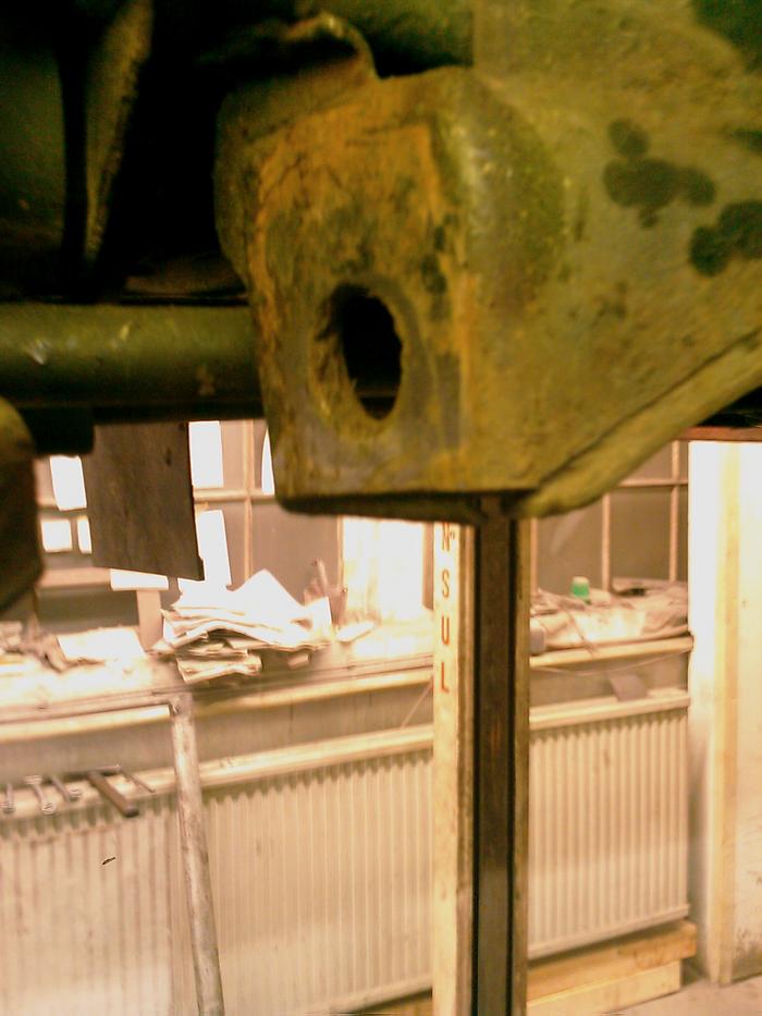 Das ganze dann noch mit den Innenseiten wiederholt und die Schubstangen gesäubert (die alten angegammelten Buchsen etc. (teilweise) runtergeschmiedet). Die dann eingebaut und fertig... FIX UND FERTIG!!! Das nächste mal, wenn ich sowas mach, entspann ich vorher die Drehstabfedern! Auto am Boden, Dreieckslenker mit Wagenheber raufgedrückt und zwei Mann aufm Bullfänger vorne die leicht wippen, DANN gingen die Schubstangen so langsam rein...