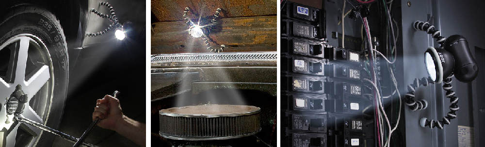 Verwenden Sie das gorillatorch wie Sie eine traditionelle Taschenlampe vorher nie benutzen konnten: Wickeln Sie es um eine Türklinke bei einem Stromausfall, haften Sie es unter die Motorhaube Ihres Autos bei Motorarbeiten oder an die Karosserie bei einer nächtlichen Reifenpanne. Klemmen Sie es an Ihr Fahrrad, befestigen Sie es an Ihrem Bettpfosten zur Verwendung als Leselampe, wickeln Sie es um einen Ast um Ihren Zeltplatz zu beleuchten - oder benutzen Sie es als Handtaschenlampe beim spazieren gehen mit Ihrem Hund u.v.m.