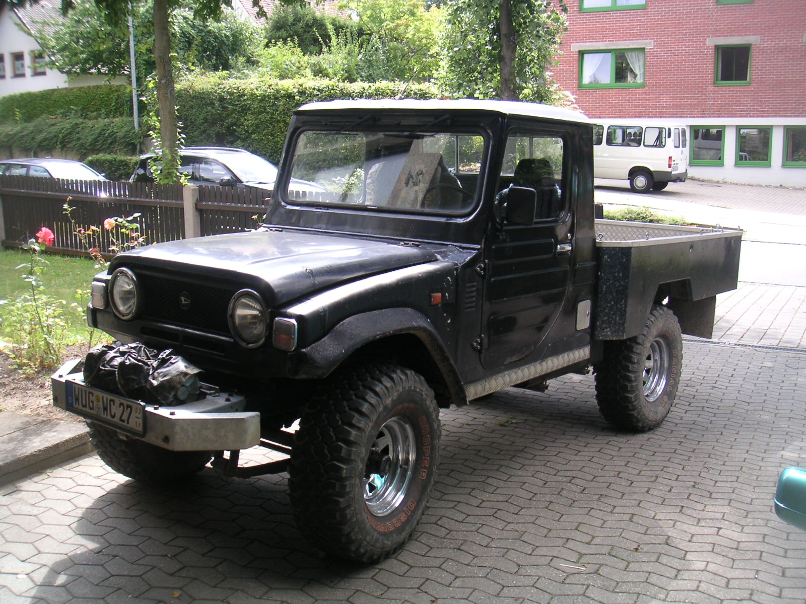 Den Pick-Up habe ich 1991 gekauft, er war völlig vergammelt (es war ein Winterdienst-Fahrzeug) und hergerichtet. Mittlerweile wurde er natürlich erneut geschweißt. Leider war die Original-Pritsche nicht mehr zu retten. Ich habe eine breitere und längere Voll-Aluminium Ladefläche gebaut - die hat nun schon einige hundert Steer Holz und vieles sinniges und unsinniges transportiert.