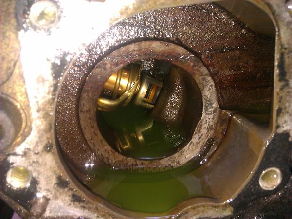 Jetzt wieder alles in umgekehrter Reihenfolge zusammen bauen. Kühlwasser am besten direkt am Motorblock und am Kühler auffüllen damit ist schonmal die meiste Luft raus. Am Kühler oben wo die beiden Schläuche zusammen laufen ist die kleine Entlüftungschraube um den Rest an Luft raus zu bekommen.