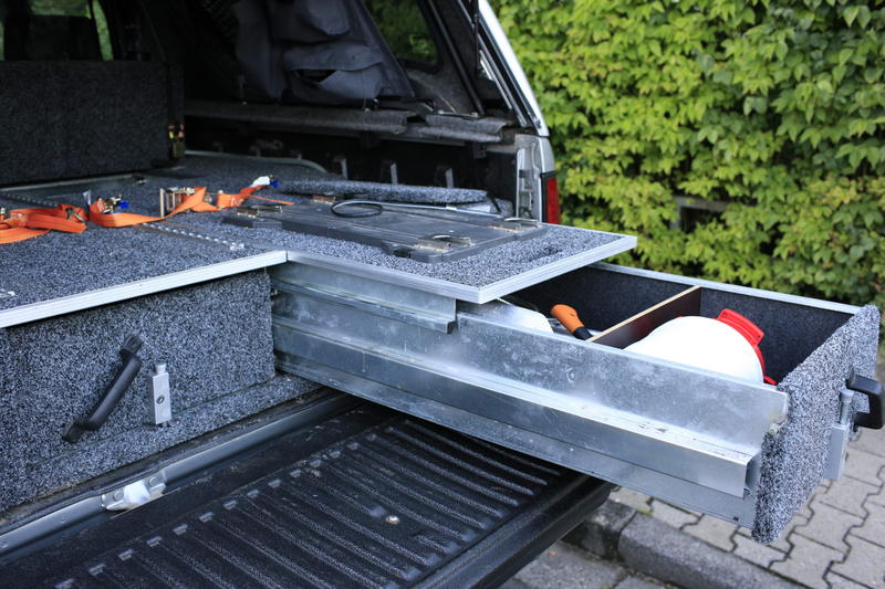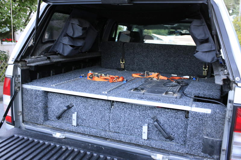 Ich verkaufe wegen Fahrzeugwechsel ein African Outback Schubladensystem für die Nissan D22 / NP300 Ladefläche. Wahrscheinlich passt das System aber in jeden x-beliebeigen Pickup, da die Schubladen alle diesselben Masse haben, das Abschlussbrett fahrzeugspezifisch angepasst wird.