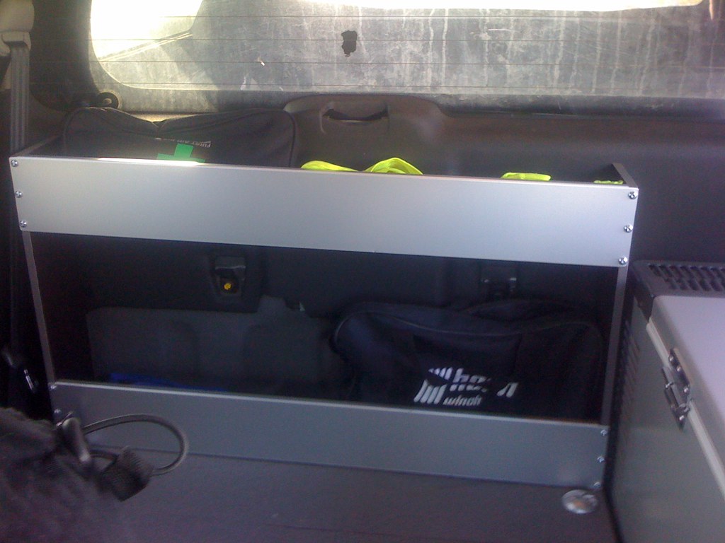 hinterm fahrersitz is die engelbox untergebracht. daneben viel platz fürn hund.