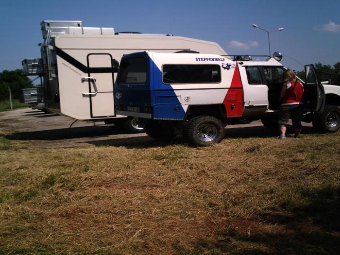 Ein ziemlich monströses Womo, an dem der arme kleine Diesel sicher mächtig zu knabbern hat!