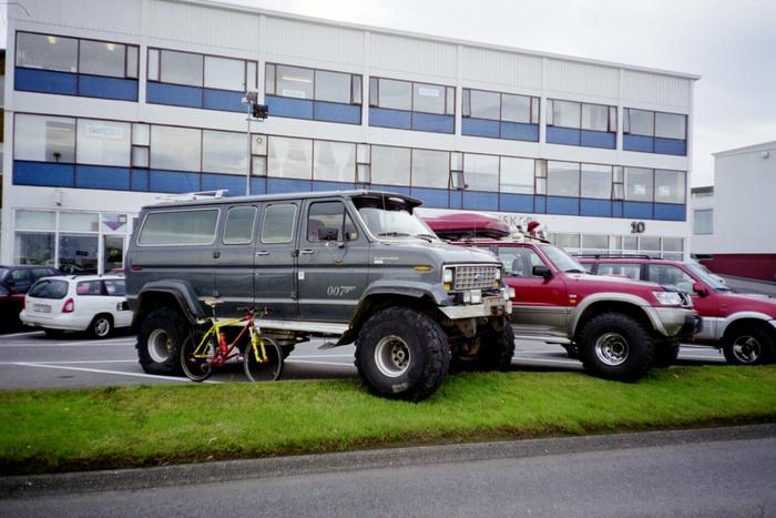 Und hier is noch n schöner typischer 44-Zoll-Räder-Isländer-Econoline in Reykjavík, mein MTB steht als Größenvergleich vorne dran:
