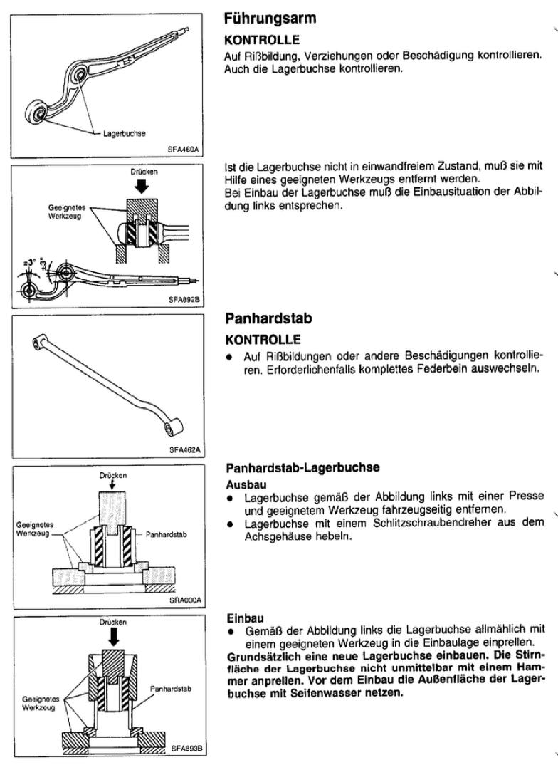 Ich werde jemanden suchen, der die Buchsen für mich wechselt. Bei einem anderen Fahrzeug habe ich bereits einen Längslenker ruiniert. Das wird mir kein zweites Mal passieren. Nee, oder?