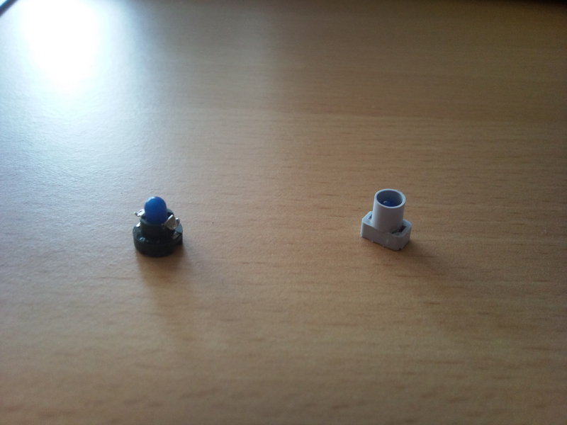 Hab gestern noch die Lämpchen zerlegt um an die Birnchen zu kommen. Siehe da ohne Schaden geschafft, werd jetzt 3mm Leds reinbauen die passen genau. Sockel sind zum Glück heil. Endlich wieder Licht an den Schaltern. | |