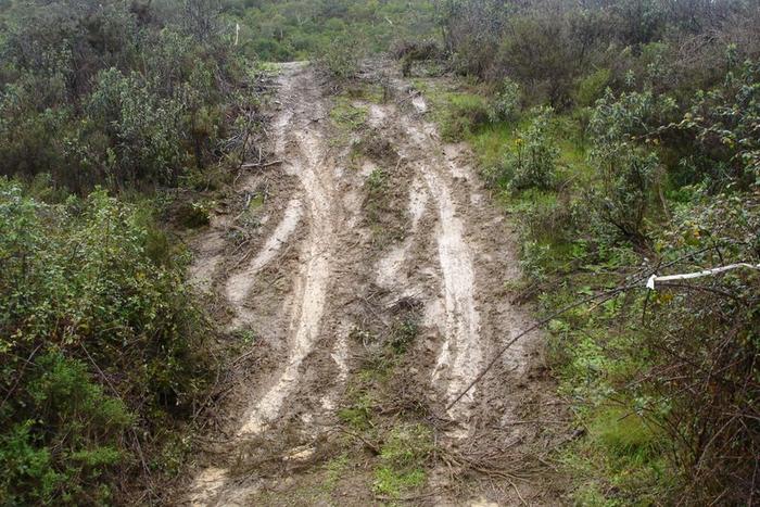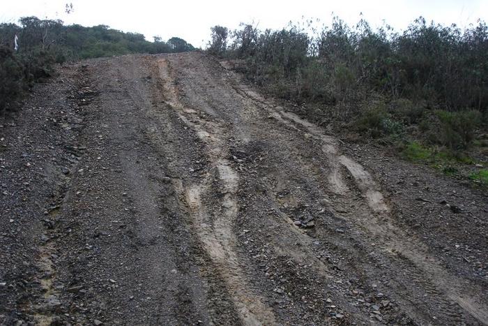 Nur die völlig abgefahrenen STT bringen es nicht mehr. An dieser kleinen Steigung bin ich oben hängen geblieben und musste dann gaaaaanz langsam Stück für Stück rückwärts wieder zurück und dabei die Spur halten. Solche Aktionen mag ich gar nicht. Der Hang ist deutlich steiler, als es auf dem Foto erscheint.