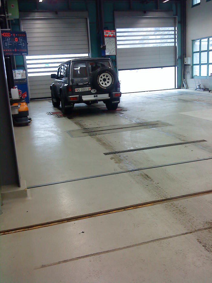 Dieses Fote habe ich bei der MFK gemacht. Der Prüfer testet gerade die Bremsen