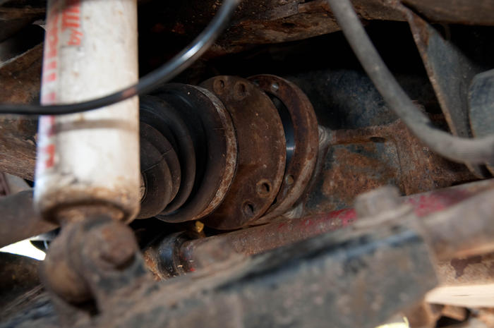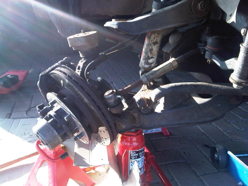 Hab diesmal nicht den ganzen Achsschenkel rausgenommen. Geht auch, aber nicht so bequem. Man braucht halt nicht die ganzen verrosteten Schrauben lösen. Am sinnvollsten ist es meiner Meinung die Achsmanschetten mit den Traggelenken zu wechseln bzw. zumindest daliegen zu haben wenn was kaputt geht.