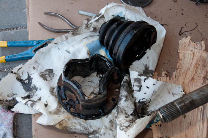 alles sauber machen. KEIN BREMSENREINIGER im Homokinet!!! Sonst hat man für immer Fett/Bremsenreiniger-Pampe. Lieber soweit es geht Sauberwischen. Wenn halt Dreck drin is, bissl mehr: