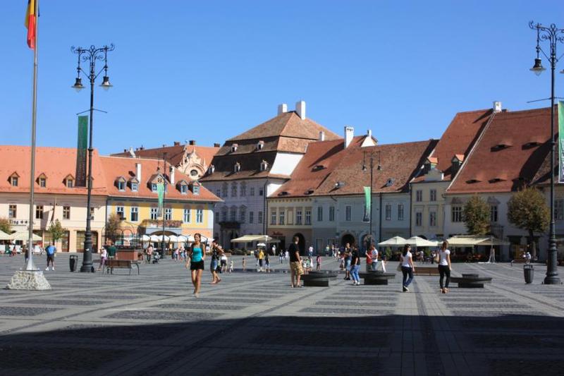 Nein Sibiu. An jedem Haus wo zu es noch eine Geschichte gibt steht es in Rumänisch, Ungarisch und Deutsch auf einer Tafel.