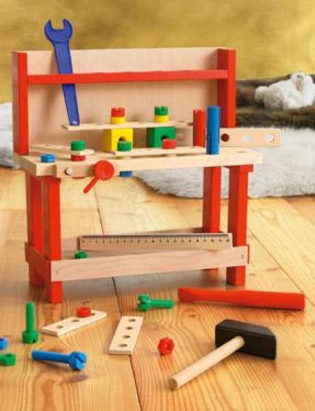 Das Werkzeug und die Werkbank wie auf dem Bild ersichtlich ist im Lieferumfang enthalten.