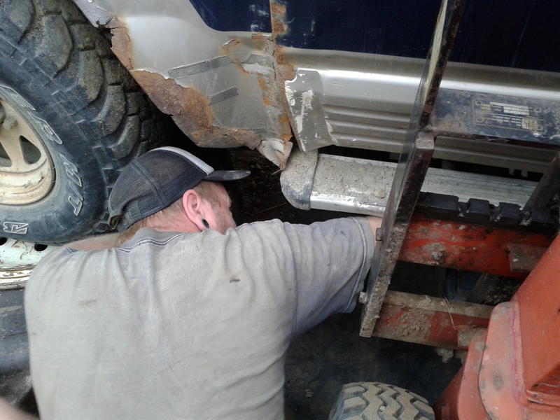 ......dann wurde fleißig geschraubt (was wirklich viel Freude machte da der Spender kaum Sand am Unterboden hatte ) und der Hubwagen samt Palette wurde untergefahren