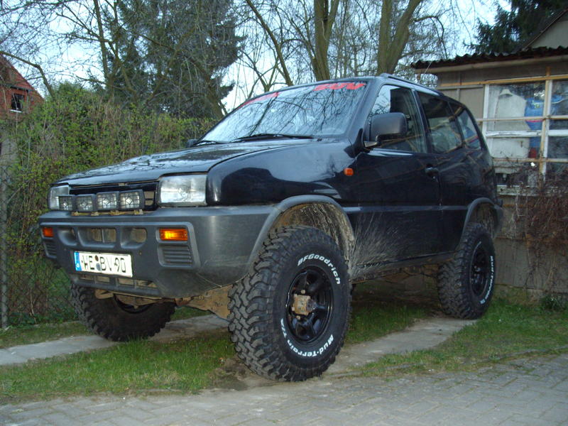 Nissan Terrano II mit 31er MT-Bereifung, 5 cm Spacer an der Hinterachse, 4cm Bodylift, Seilwinde, Schnorchel, Rammbügel,CB-Funk, etc...