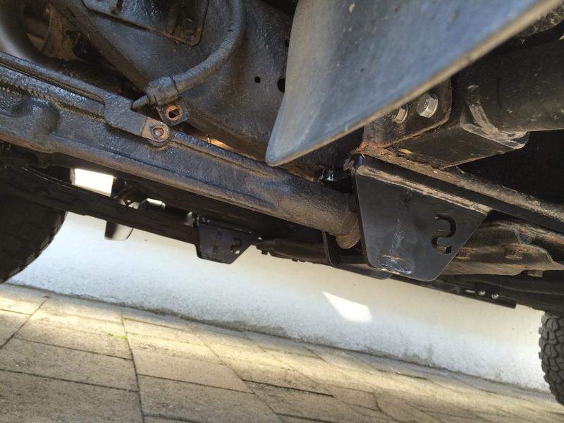 Der mitgelieferte Winkel Kommt oben auf den Rahmen und da kommt dann auch die 5. Schraube durch, nach der du mich gefragt hast. Somit hast du die Dropbox dann mit 4 Schrauben an der Getriebetraverse verschraubt und vorne am Rahmen. Dafür muss nicht begohrt werden, du kannst die Schraube durch Dropbox, Rahmen und Winkel durchstecken und verschrauben.