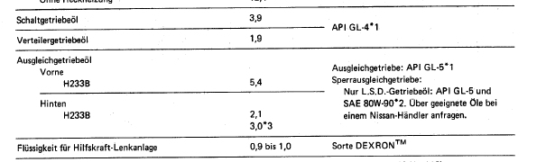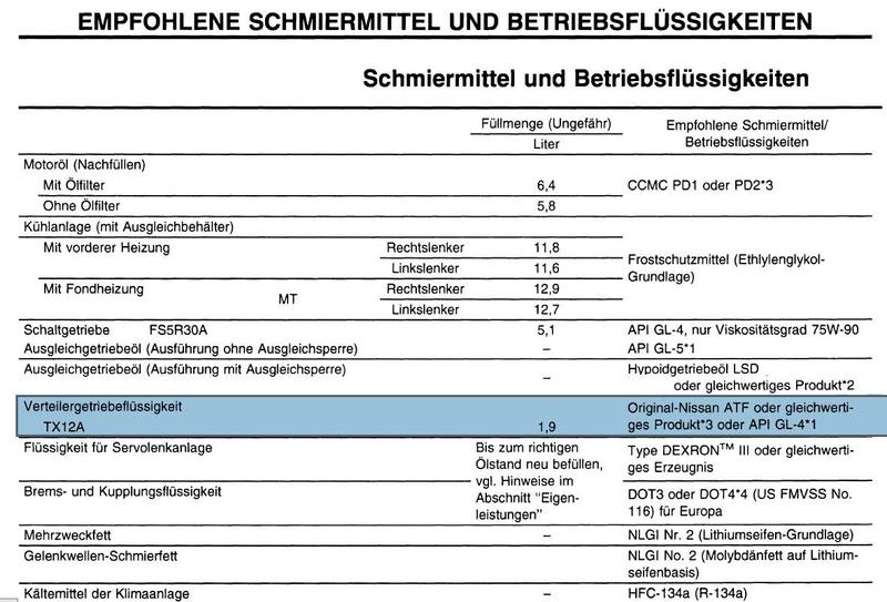 Aber, bezüglich Deines WHB-Auszuges ... bei Nissan gibt es für jedes Modell/jede Ausführung (u.a. bezüglich der Naben) und jede Klimazone die passende "Öl-Empfehlung".