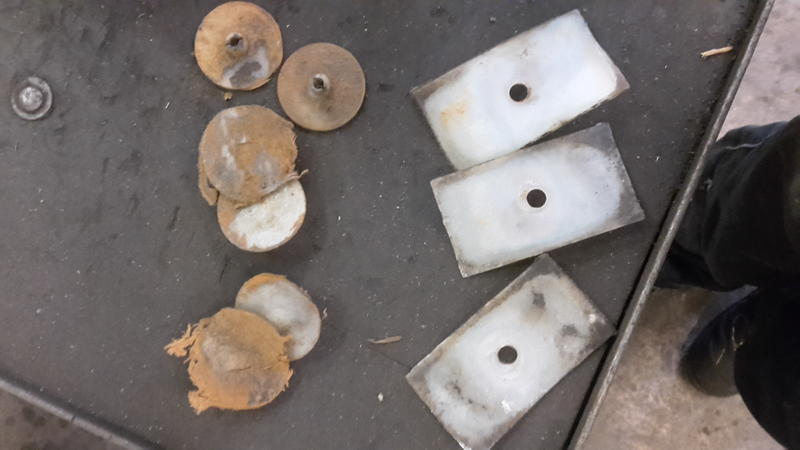 | Die runden Kunststoffgleitplatten mit der Haltenase habe ich mir ruckzuck selber gedreht. Wer also jemanden mit ner Drehbank an der Hand hat... | |
