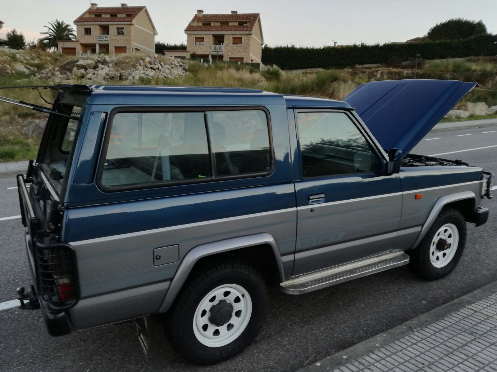 Der Weisse in der Mitte mit dem ST-Kennzeichen dürfte 255/85er auf irgendwelchen Nachrüstfelgen (eventuell in 7"?) drauf haben, und der Blaue mit dem weissen HT ohne lesbares Kennzeichen ganz am Anfang könnte ebenfalls diese Reifengrösse fahren (ich tendiere jedoch eher zu 235/85-16), die Felgen sind jedoch sicherlich 8"er mit negativer ET (geschätzt -20 oder so, könnten aber auch -33 sein).