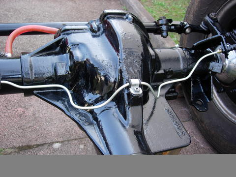 Wenn der Rahmen freiliegt, können auch andere Schadstellen leichter erneuert und konserviert werden, wie Achsen, Bremsleitungen, Bremskraftregler, Bremszangen, Lenkgestänge, Fahrgewerk, Deine zerlöcherten Bremsscheibenschützer, usw. Für die Bremsleitungen, als Meterware gekauft, brauchst Du eine Bördelgerät für die richtigen Nippel. Neue Nippel und die Halter für die Leitung gibt's neu beim Schraubenladen.
