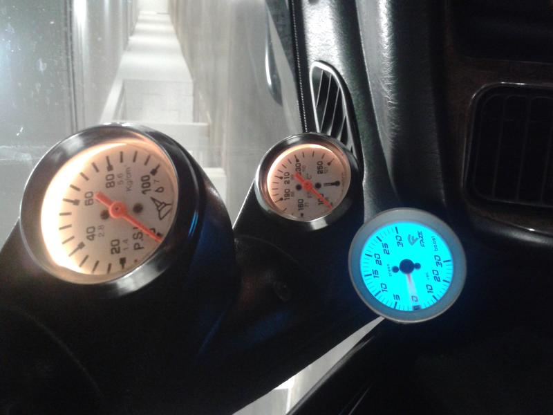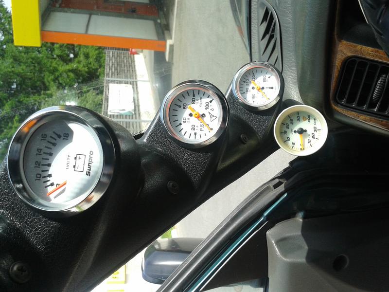 von oben nach unten: Amperemeter / Öldruck / Wassertemp / Turbodruck+Sog