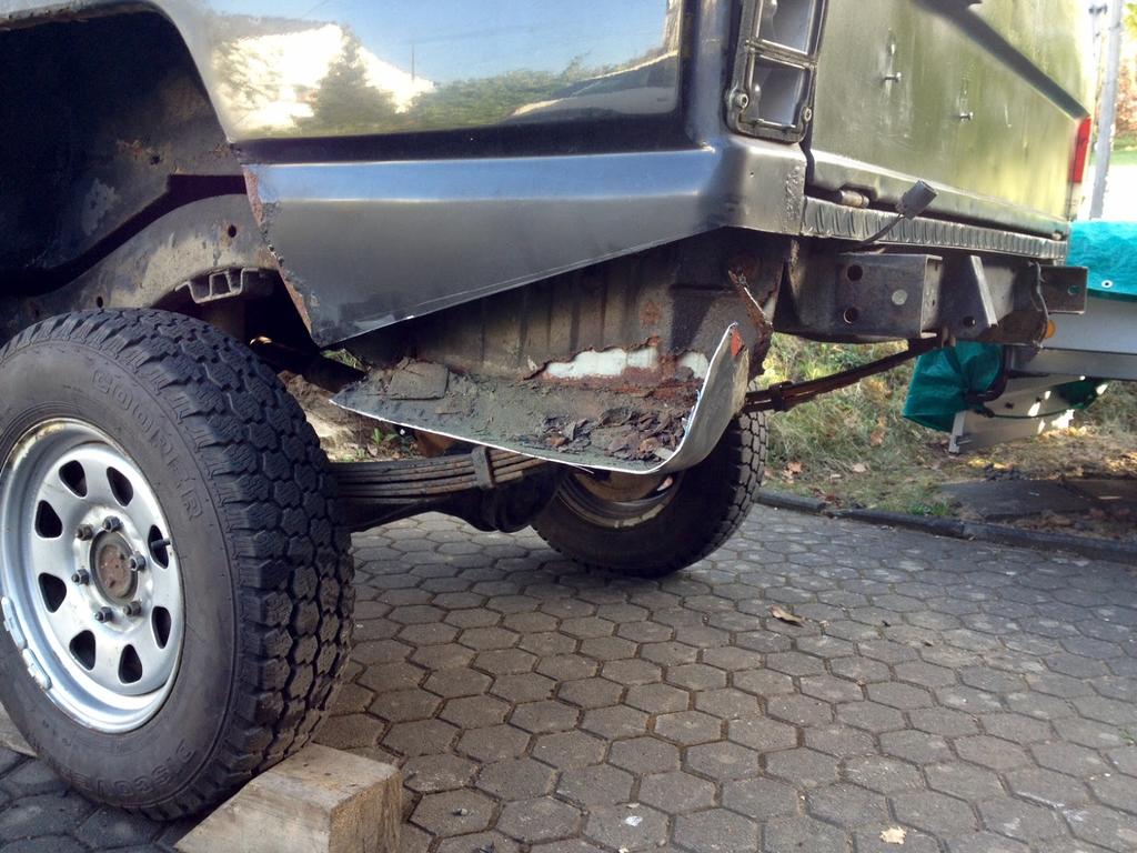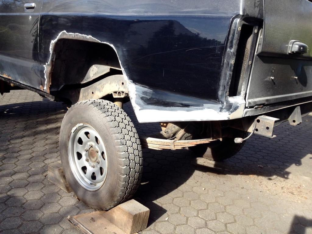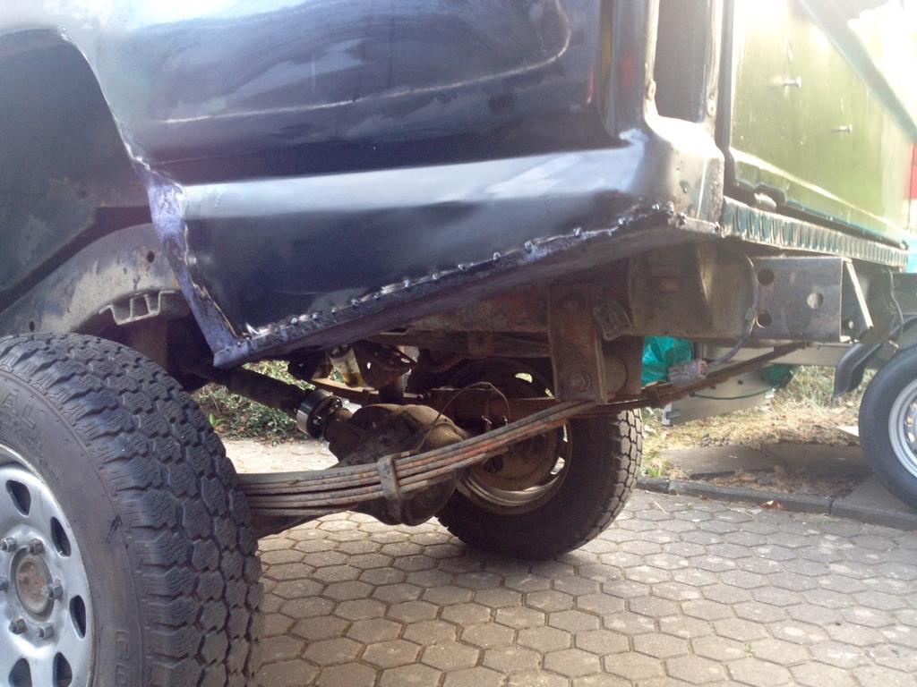 Hinten: Andere Leuchten verbauen, die Blinker und Rücklicht oben haben (gibts beim Escape4x4), Stoßstangenecken weg und wenns bei dir eh verrostet ist, kannst du noch diese Karosserieteile komplett entfernen: