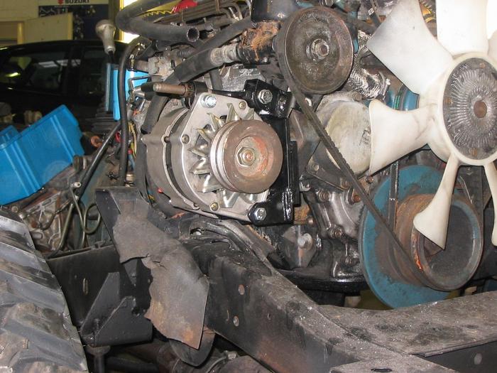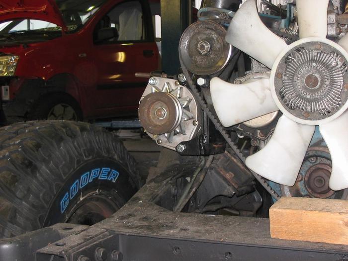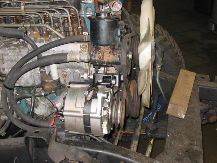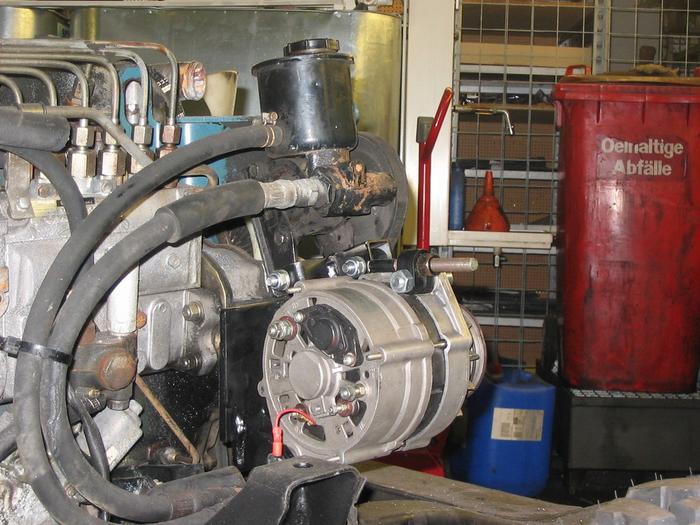 Die Zweite Lichtmaschine ist unter der Servopumpe (24 Volt 80Amp)