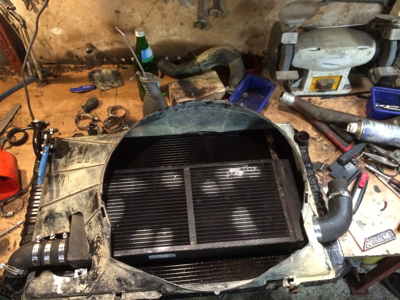 Hab vor dem Einbau noch einmal beide Kühler abgedrückt um sicher zu gehen, dass beide noch dicht sind: