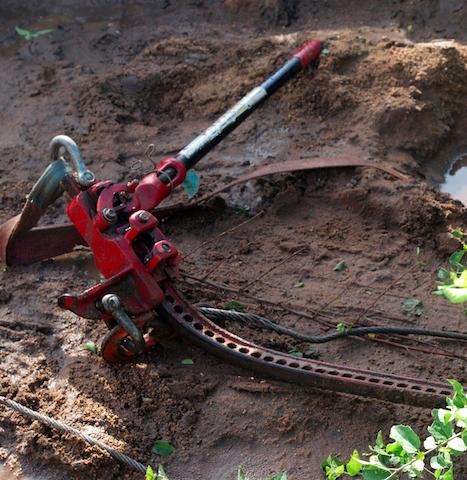 Ich vermute mal, daß hier ein defekter HiLift an beiden Enden festgespannt und mit dem Drahtseil in die Biegung gezogen