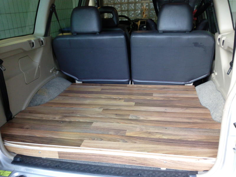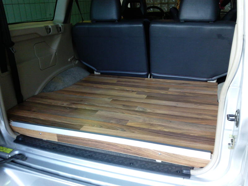 So ist dann ein ebener Kofferraumboden in Kirsch-Schiffsbodenoptik entstanden..