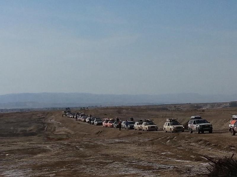 Letzte Woche: im Konvoi durch militärisches Sperrgebiet in Israel (Terrano, 2. v. rechts):