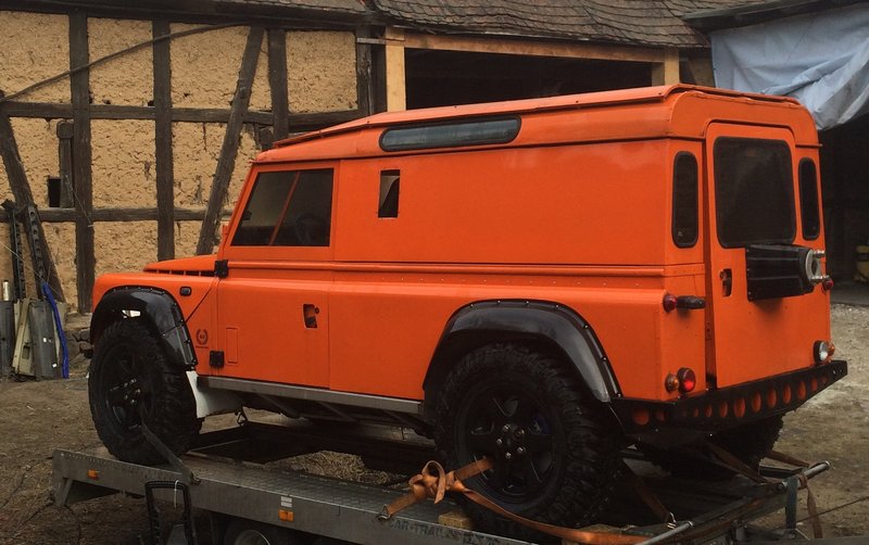 | Fahrzeuge 1. Defender 90 MY 10 2. 130 MY 02 mit Tibus-Portalen und 4,0 l V8 3. Sankey WT MKII ´85 mit 110er HCPU Wanne 4. Vespa PX 200 |