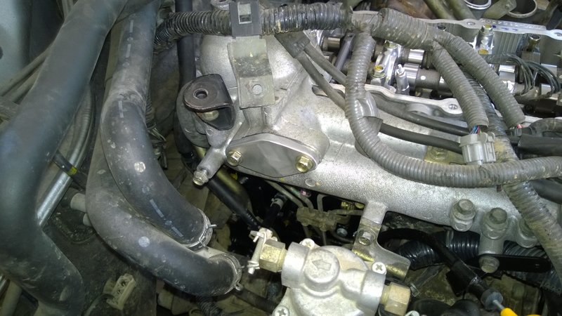 Einfach ein 4,5mm Loch gegenüber dem Ladedrucksensor gebohrt, ein M6 Gewinde reingeschraubt und fertig. An dieser Stelle ist das Material mehrere mm dick und man hat eine grade Auflagefläche.