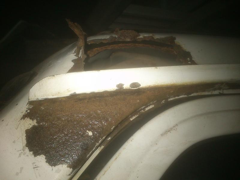 Die Beschädigung an der A-Säule, ich hätte nciht gedacht das der Rost sisch schon so weit ausgebreitet hat