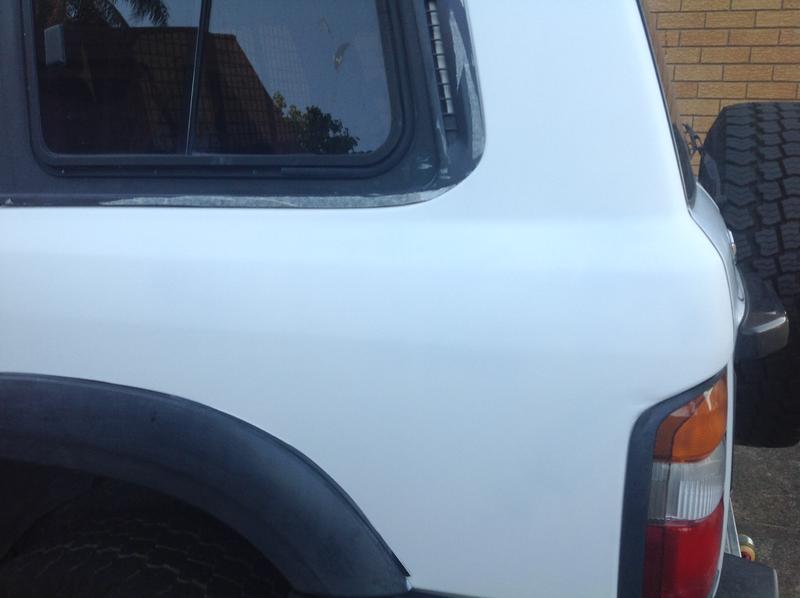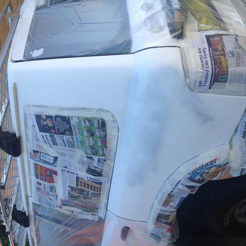 Die logisch erforderlichen Arbeitsschritte waren: Schleifen - Spachteln - Schleifen - Abkleben - Spritzen (Grundieren) - Spritzen (Toplayer: Flat White).