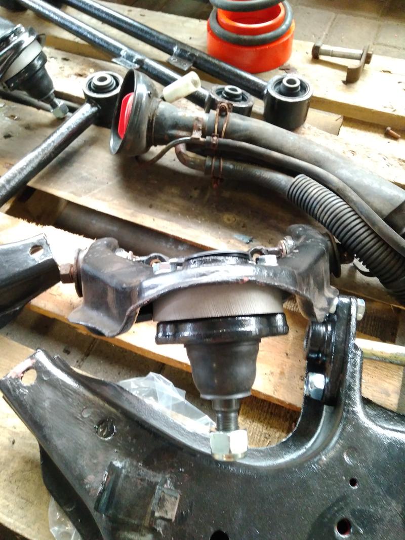 Heute ging es dann an die Vorderachse, erstmal die empfindlichen Gewinde nachgeschnitten und dann alle Lenker eingebaut, Achsschenkel und die Radnabe :-D