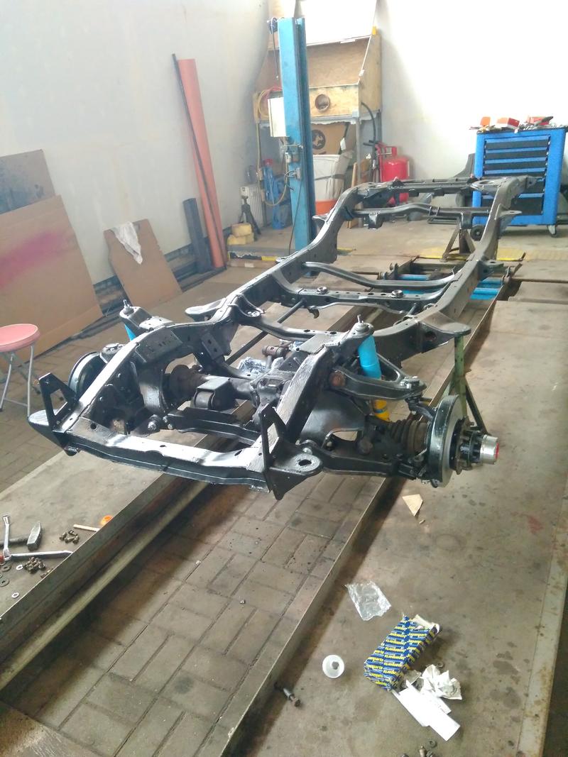 Die Hinterachse ist inzwischen fertig gestrichen und fertig zum einbau! Der Rahmen wird also Morgen wieder auf den "Bauch" gedreht und dann wird das komplette Fahrwerk montiert :-)